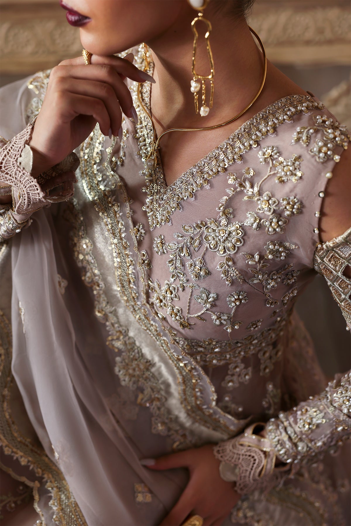 - Embroidered Hand-Embellished Sleeves (Organza) – 2 Pcs