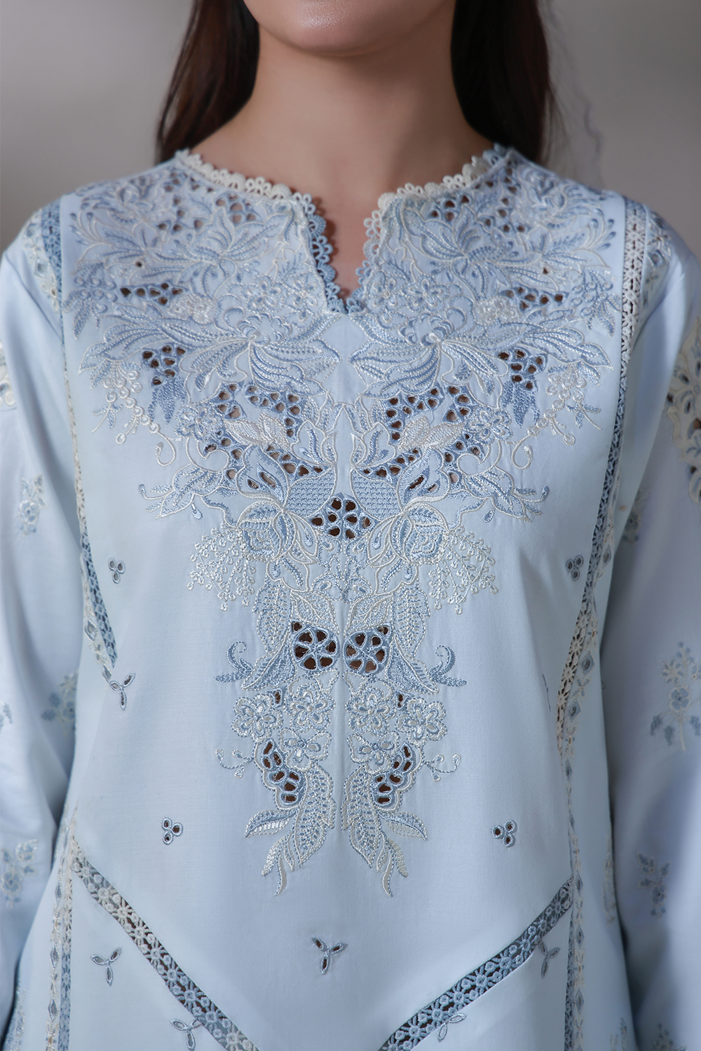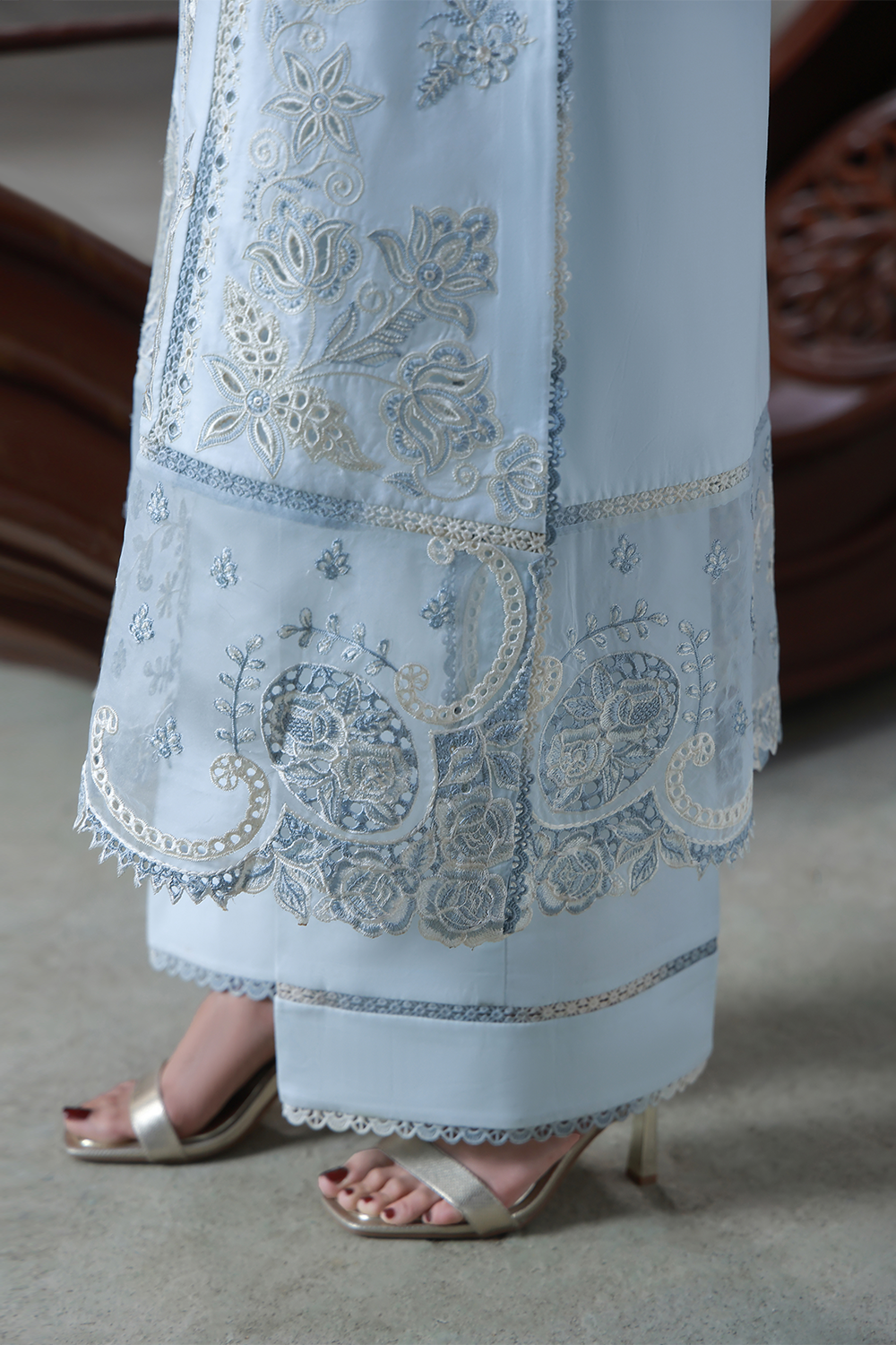 - Chikankari Embroidered Sleeves Border